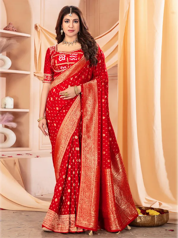 Features traditional Banarasi motifs, a classic border & woven pallu
